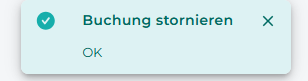 - Die Buchung wird anschließend storniert, was durch eine vorübergehende Benachrichtigung bestätigt wird.