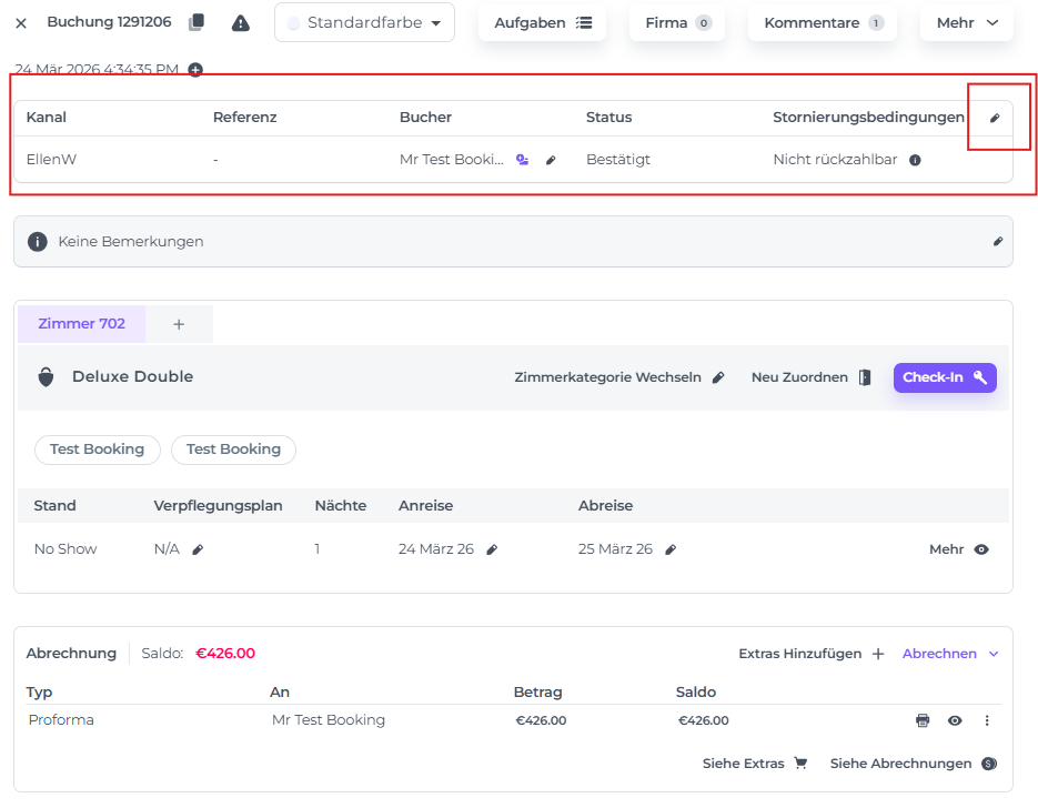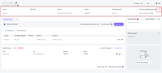 Auf der Buchungsseite (innerhalb der Reservierung selbst)