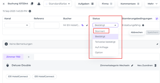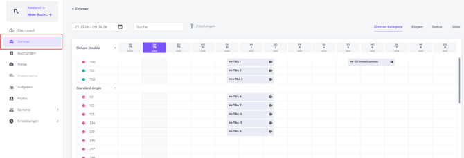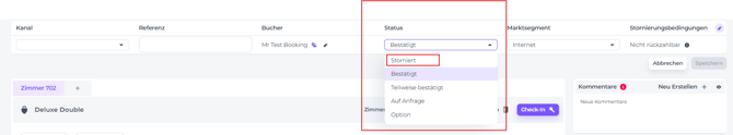 3 - Stornieren über die Zimmer (Zimmerplan/Zimmerkalender):