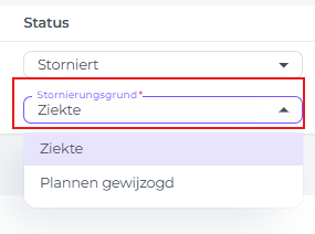 - Klicke auf Speichern, nachdem du den Stornierungsgrund ausgewählt hast.
