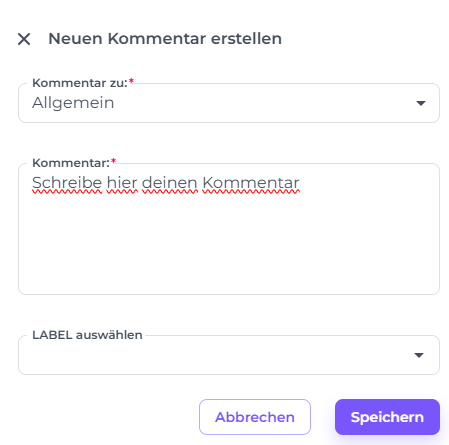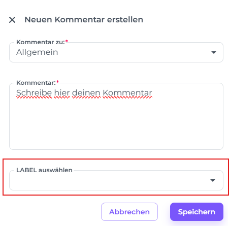 - Falls gewünscht, kannst du im Feld Label ein Schlagwort hinzufügen. Diese sind besonders nützlich, wenn du deine Kommentare später filtern oder organisieren möchtest.