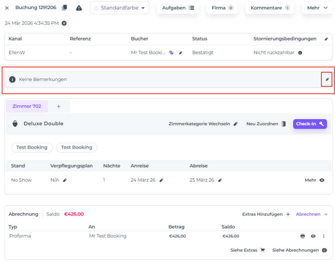 - Obwohl dieses Feld primär für OTA-Kommentare gedacht ist, kannst du es über das Stift-Symbol bearbeiten. Dies wird jedoch nicht empfohlen. Nutze stattdessen Kommentare für interne Mitteilungen.