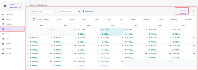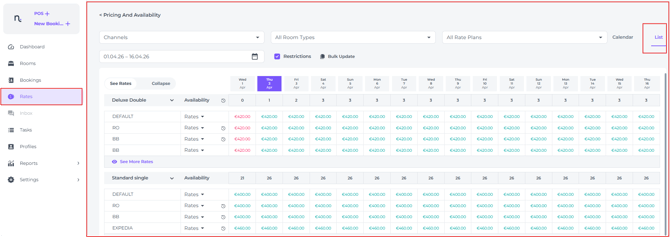 For the List View, see our guide on: Rate Calendar List View - How change Rates and/or Availability