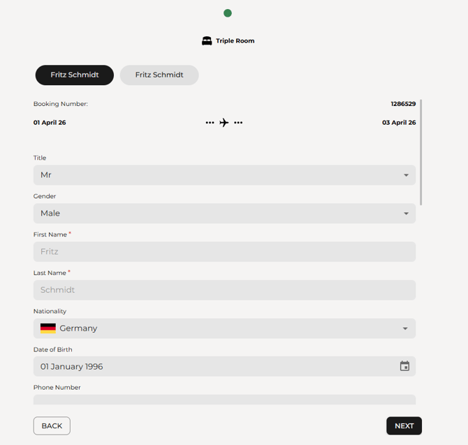 - Mandatory Main Guest - Hide Other Guests: Requires this information from the lead guest only; the field remains hidden for all other guests.