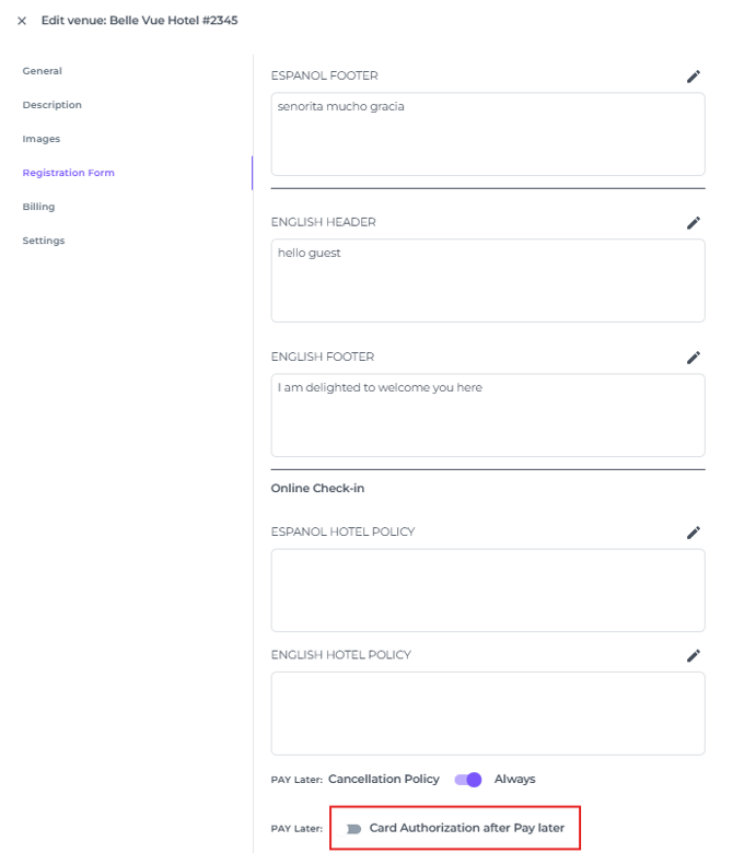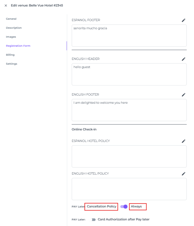 - Scroll to the bottom of the page and toggle the switch to 'Pay Later' Cancellation Policy