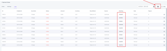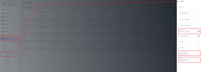 To filter out the failed authorisations: Navigate to Settings > Payment Rules > Logs.