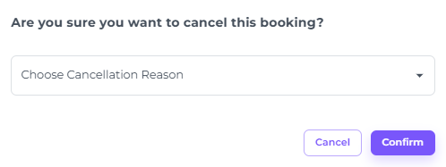 - Click on the ‘more action button ‘ (3 dots behind the booking) and choose 'Cancel Booking’:
