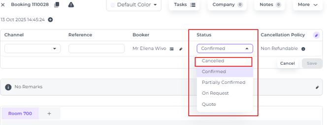3 - Cancel via the Rooms (Room Rack/Room Calendar)