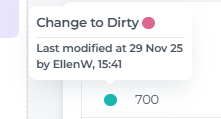 👉 Hoovering your cursor on the coloured dot will give you the information on which user changed the status and when.