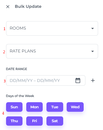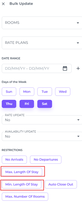 - Rate Plans - Select the rate plan for which you want to set the MinLOS/MaxLOS.