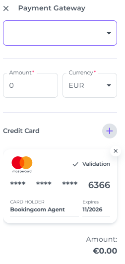 The option to manually select a credit card is intended, for example, for situations where the payment for this booking has already been made in the previous PMS system, as there must be a payment against the Proforma.