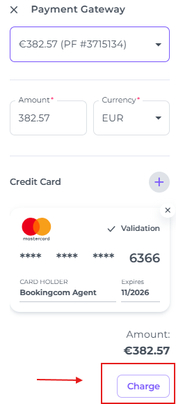 - If there are multiple credit cards attached, firstly choose the one you would like to charge by clicking on it: