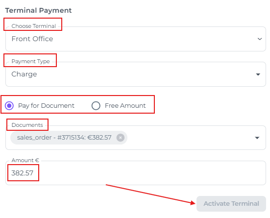 - Activate Terminal, hand out the terminal to the guest and have the guest settle the applicable amount.
