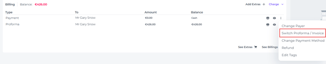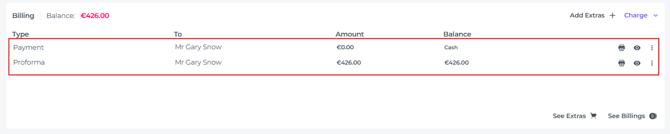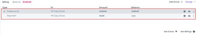 - The check mark then indicates that a payment is linked to the Proforma or Invoice: