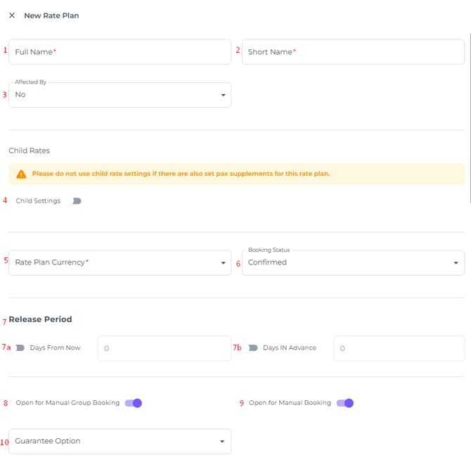 - Release Period - You can choose to have the rate plan active X days from the current date in the future (7a) or have it active X days from the current date (7b)