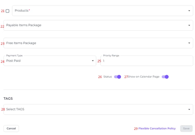 - Payable Items Package - Select the items that are not included in the room rate—these will be charged in addition to the rate displayed on the rate calendar.