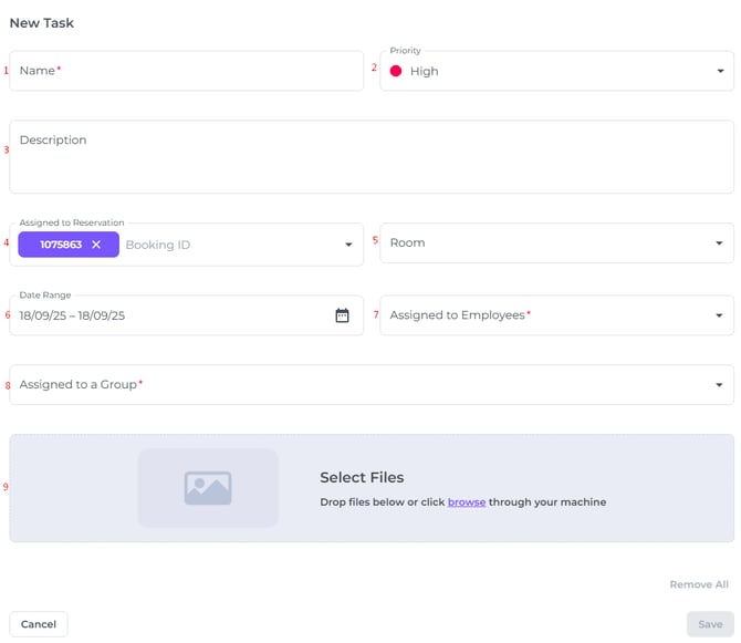 - Assigned to reservation - Already pre-filled in the task creator for the booking page.