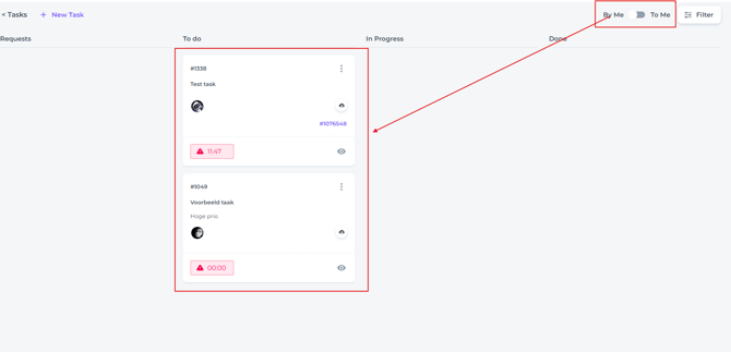 'To Me' (when a task has been created for you by another user, or if you have assigned a task to yourself):