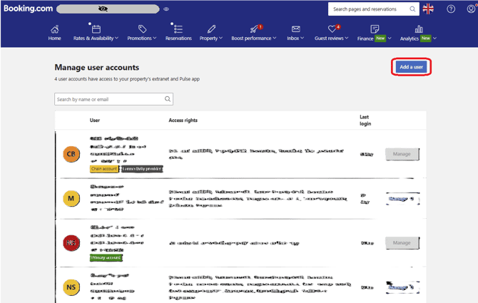 To provide Noovy Support with access to manage reservations from external booking platforms, a user should be added to the relevant OTA extranet. While some OTAs support multiple user accounts per property, others have more restricted access. This guide details how to grant Noovy Support access where possible, including step-by-step instructions for Booking.com, Expedia, and Agoda/YCS.