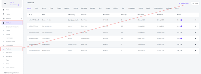 In addition to rooms, other products can be created to be sold, such as bicycle rental, parking, late check-out, early check-in or food items and drinks.