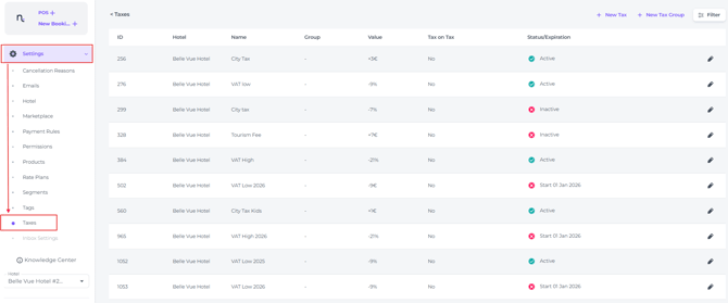 Before creating a product, determine which VAT rate applies (high or low). Check this with the Tax settings in the system: