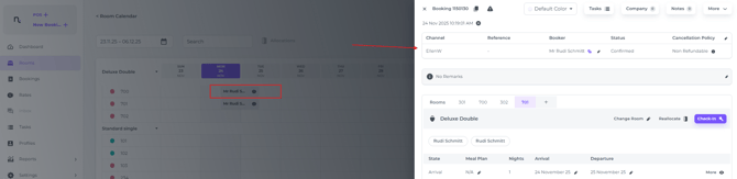 • The Booking Pop Up can be found by clicking on theeye-icon behind the booking on the far right: