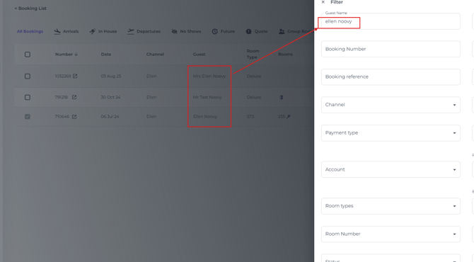 Also: Searching by name can be tricky as there might be multiple guests on the booking list under the same name (!)