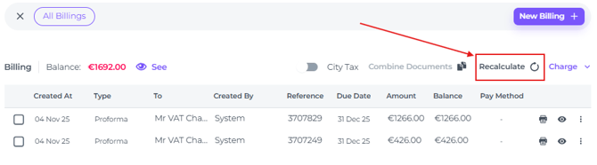 If the VAT is not displayed correctly, simply click the recalculate button to automatically update and correct the VAT on the document: