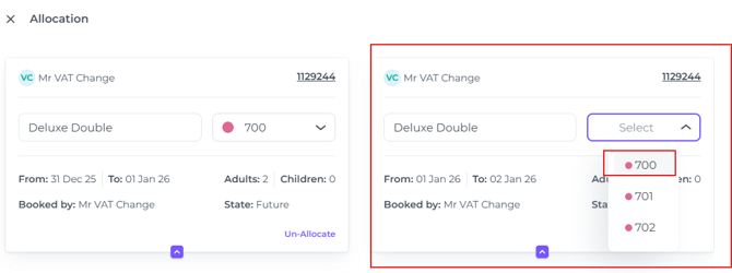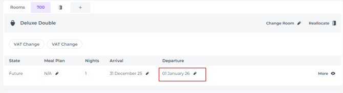 - The added room will have to be allocated to the same room number as the original room with the amended departure date of 01.01.26:
