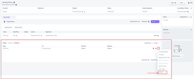 If the booking has already been cancelled, the original Proformas will also have been cancelled automatically. In that case, the next step to cancel Proformas does not apply.