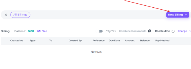 - To create a No-Show or Cancellation Proforma go to New Billing in the Billing Section:
