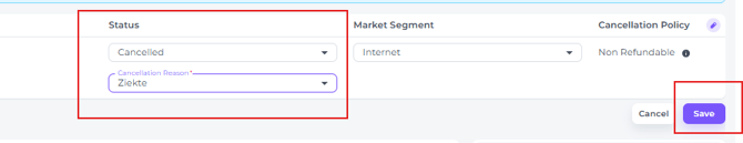 - If a Cancellation reason is required (as per configuration of your property in the system) choose the applicable one: