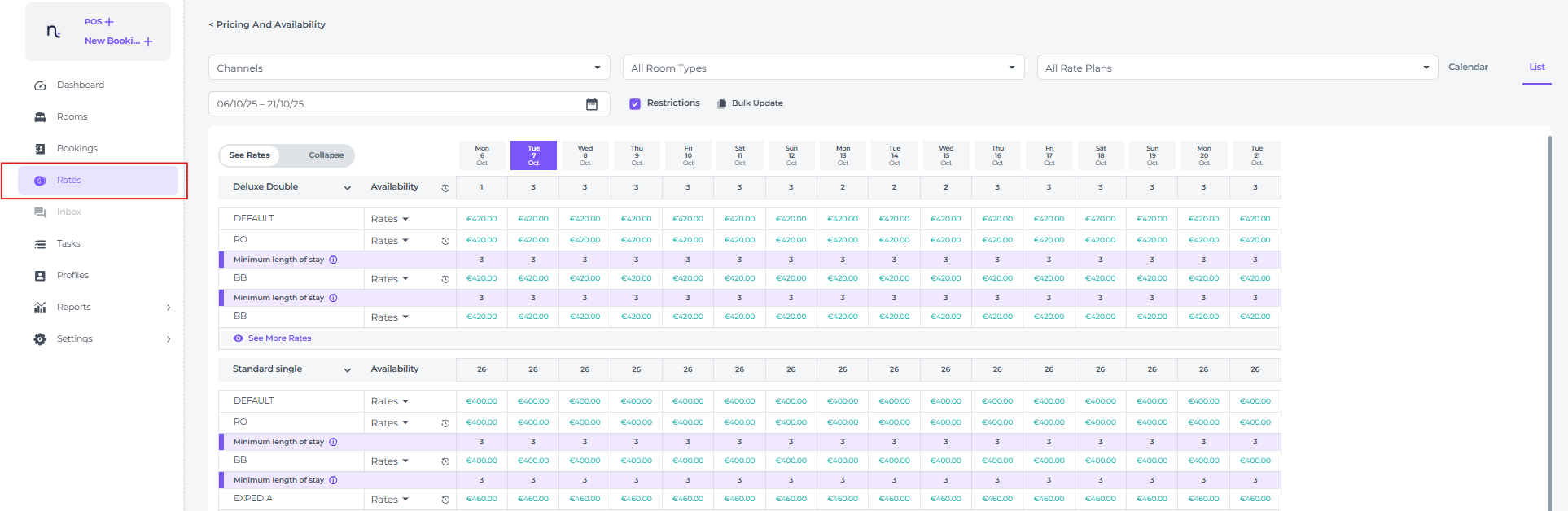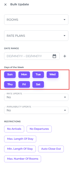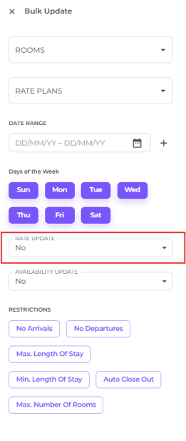 Updating rates, availability, and restrictions individually can be time-consuming and require careful attention. With Bulk Update, you can streamline these updates by making changes across multiple items at once, saving valuable time and effort. This article shows you how to use the Bulk Update feature.