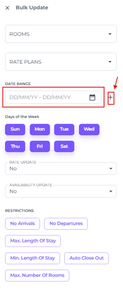 - Choose the date range the changes should be applicable to. You can choose multiple periods by using the + sign: