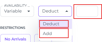 - No arrivals: Prevents guests from checking in on the specified dates. This means that if a guest chooses to arrive on a day that falls within the period of the specified restriction, there will be no availability. However, guests can still book a stay that starts before or after the restricted period and includes the restricted dates as long as they do not arrive on the specified days.