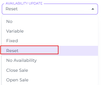 - Reset = Reset the availability to its actual amount, undoing all manual changes: