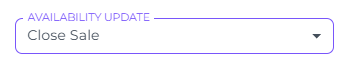 - Close Sale = Sets the availability to zero, closing the sales completely. No cancellation that occurs will open up available rooms: