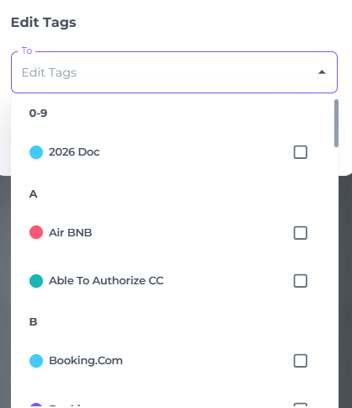 - In the pop up screen that appears choose one or multiple tags to apply: