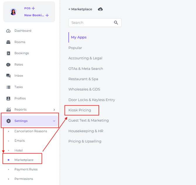 - From the main menu choose Settings - Marketplace - Kiosk Pricing:
