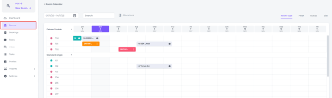 - Reallocate: Reassign guests to alternative rooms within the booking.