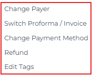 Switch Proforma/Invoice - Choose which Proforma or Invoice the payment needs to be attached to.