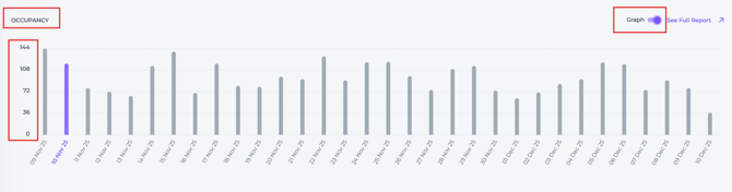 - Graph - Presents a 30-day occupancy overview, with the vertical axis displaying the number of rooms.