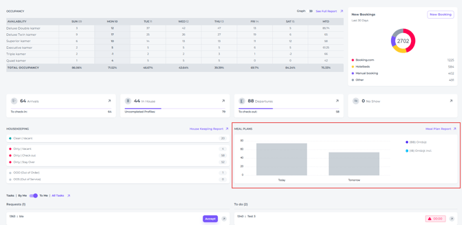 Displays all meal plans scheduled for today and tomorrow, offering the F&B team clear visibility to anticipate staffing and inventory needs for the upcoming day.