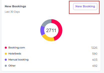 Shows you the total number of bookings created over the past 30 days, clearly segmented by the most frequently used booking channels, manual bookings, and other sources.