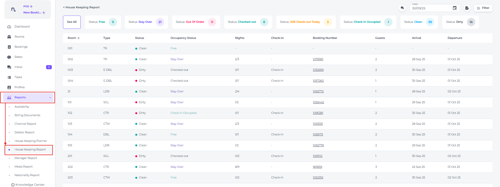 - Booking Number - The unique reservation identifier for each booking. Clicking on this number will take you directly to the detailed booking page.