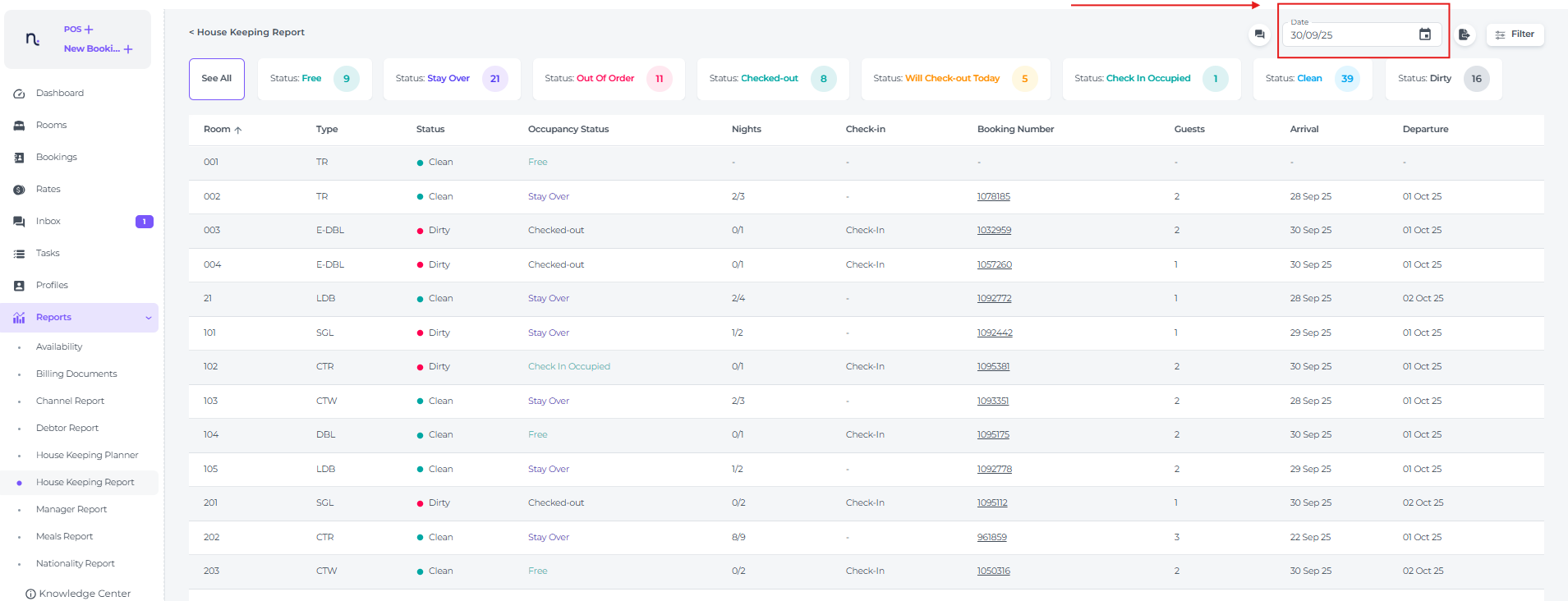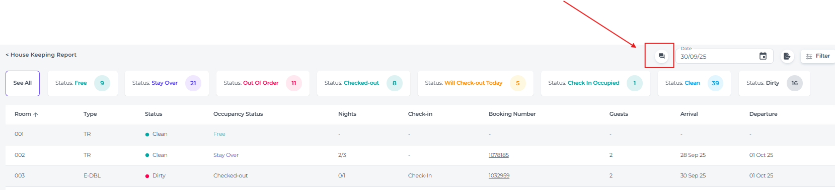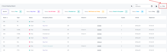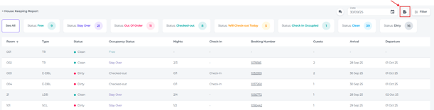 - Guests - The number of guests occupying or stayed in the room, which is crucial for housekeeping to prepare the appropriate amenities and linen.