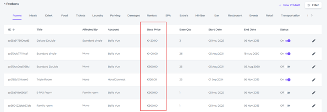 For rooms, the base price is recommended to be set high, as nightly rates are determined, set manually and managed through the rate calendar. This higher base price acts as a safeguard, ensuring rooms are not offered at unexpectedly low rates if nightly prices haven not yet been set in the rate calendar: