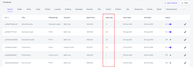 Room availability, however, works differently—it's directly impacted by reservations (whether made or cancelled), as well as any manual adjustments carried out in the Rate Calendar: