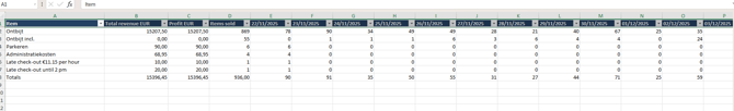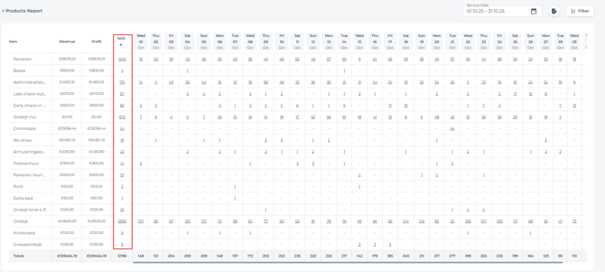 - The overview will also show you the amount of sold items per day: