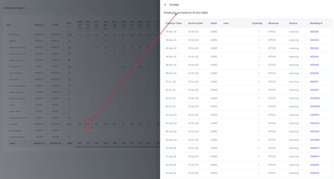 - Source - Was the product added to a Booking, or sold via the POS (Cash Register) for passer by guest with no booking?